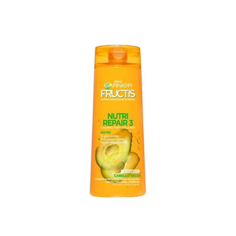 Fructis Nutri Repair Butter es un champú fortificante enriquecido con 3 aceites nutritivos: jojoba, macadamia y almendra con 3-glyceride para limpiar, nutrir en profundidad y aportar suavidad y brillo.